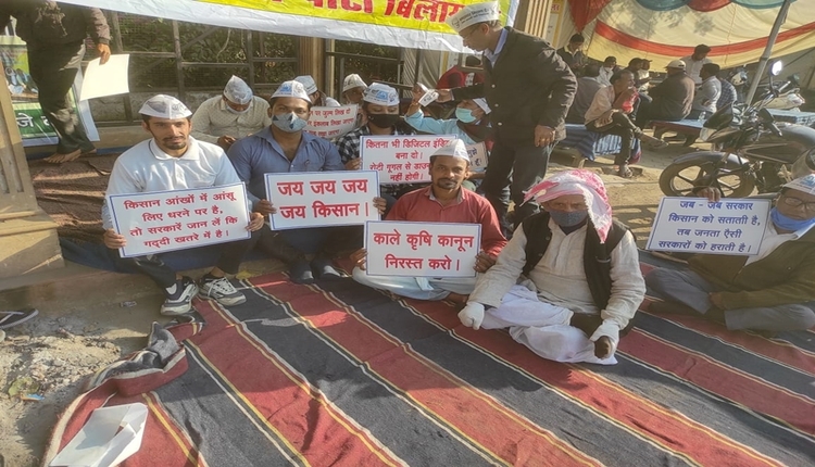 किसान आंदोलन के समर्थन में आम आदमी पार्टी ने दिया धरना