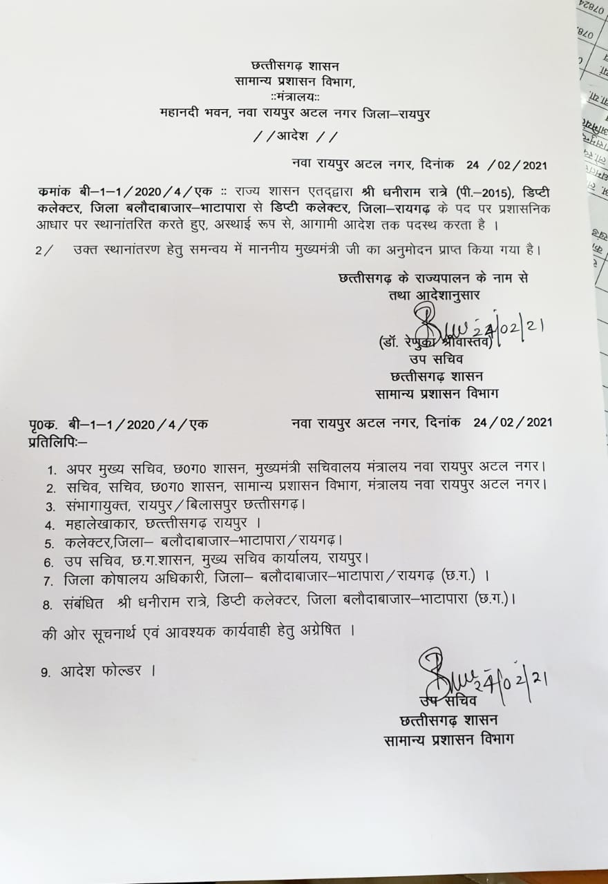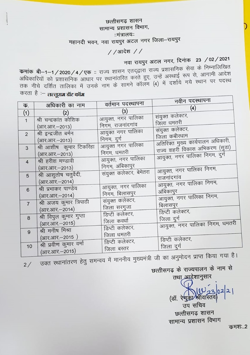नगर निगम आयुक्त समेत कई डिप्टी कलेक्टरों के तबादले, देखे सूची