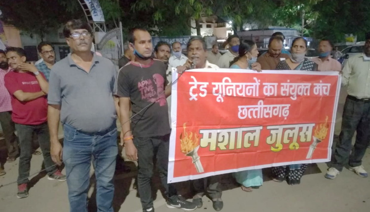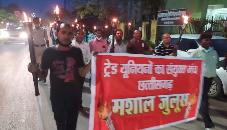 रायपुर( खबर वारियर) देश के किसान संगठनों के 27 सितंबर के भारत बंद के आव्हान का पूर्ण समर्थन करते हुए ट्रेड यूनियनों के संयुक्त मंच व अन्य जनसंगठनों ने रायपुर में आज मशाल रैली आयोजित की । यह रैली कर्मचारी भवन से निकलकर कालीबाड़ी, महिला थाना, मोतीबाग, छोटापारा,।कोतवाली होते हुए सप्रे स्कूल में समाप्त हुई ।
