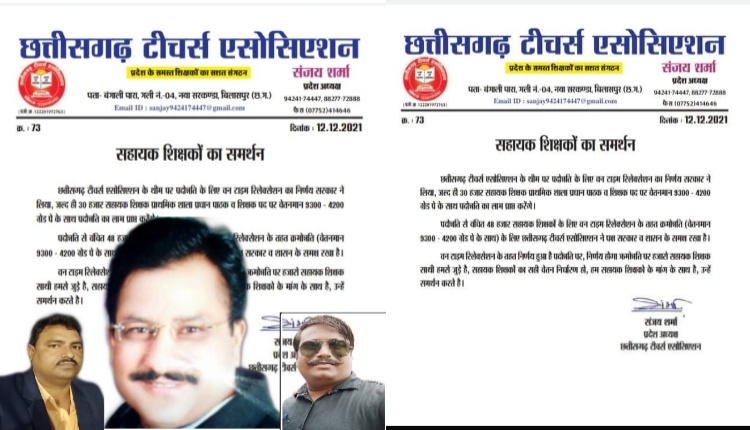 सहायक शिक्षकों को छत्तीसगढ़ टीचर्स एसोसिएशन का मिला समर्थन