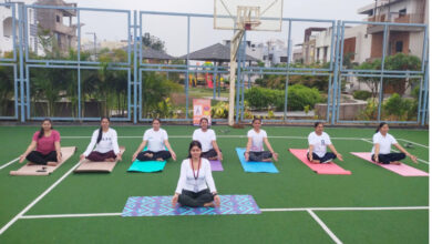 योग दिवस के अवसर पर रायपुर के विनायक सिटी में महिलाओं ने किया योगाभ्यास